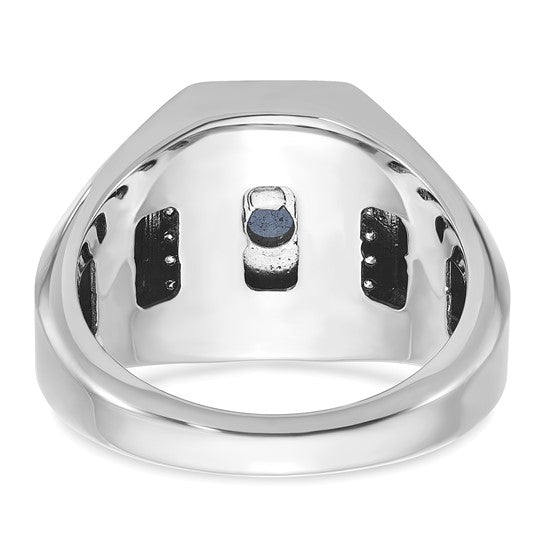14k White Gold IBGoodman Men's Satin Sapphire Doublet Stone and 1/4 carat Diamond Complete Ring