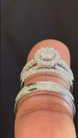 10K WHITE GOLD 1.75 CARAT MEN WOMEN DIAMOND TRIO ENGAGEMENT WEDDING RING BAND SET