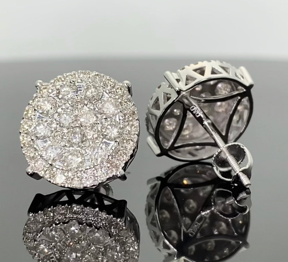 10K WHITE GOLD 2.25 CARAT MENS WOMENS 14 mm 100% GENUINE DIAMONDS EARRING STUDS