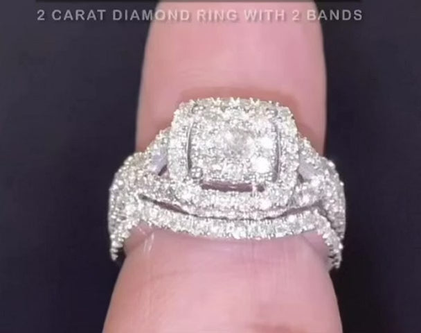 10K WHITE GOLD 2 CARAT WOMENS DIAMOND ENGAGEMENT RING WEDDING BAND BRIDAL SET