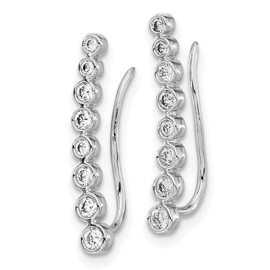 10k White Gold Diamond Graduated Ear Climber Earrings