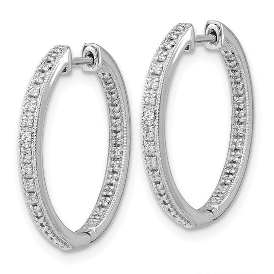 10k White Gold Polished Diamond In/Out Hinged Hoop Earrings