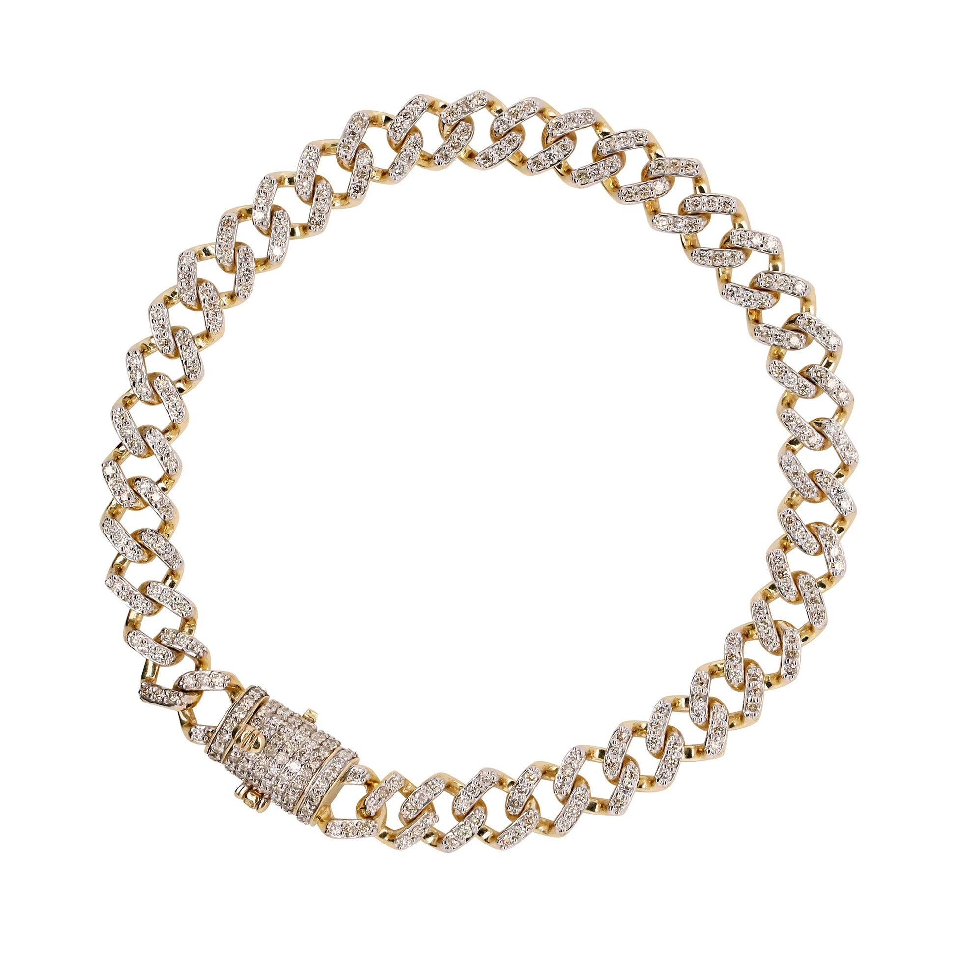 10K YELLOW GOLD 3.50 CARAT REAL DIAMONDS 8MM 8.50 INCHES 19.53 GRAM GOLD CUBAN LINK BRACELET