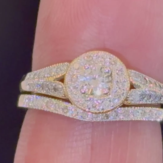 10K YELLOW GOLD .60 CARAT WOMENS REAL DIAMOND ENGAGEMENT RING WEDDING BAND SET