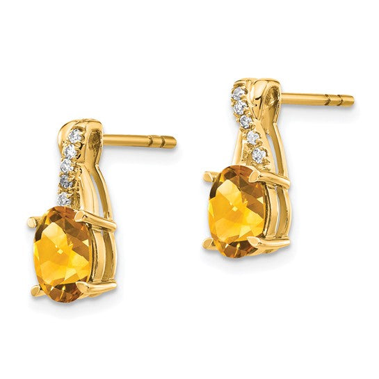 10k Yellow Gold Oval Citrine and Diamond Post Dangle Earrings