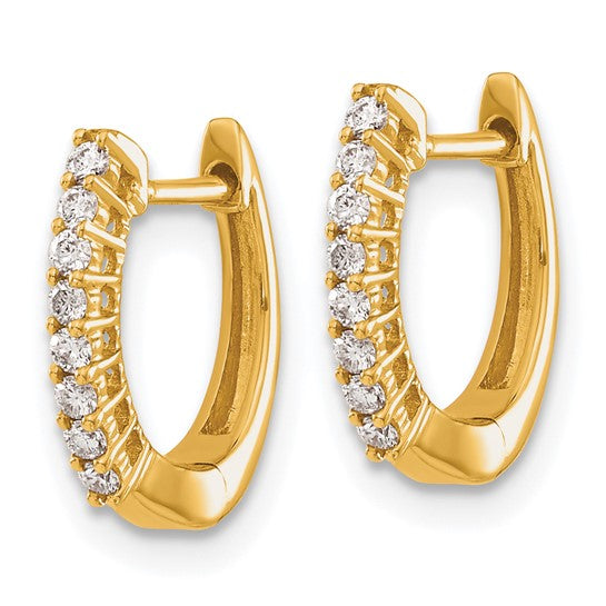 14k Gold Polished Diamond Hinged Hoop Earrings