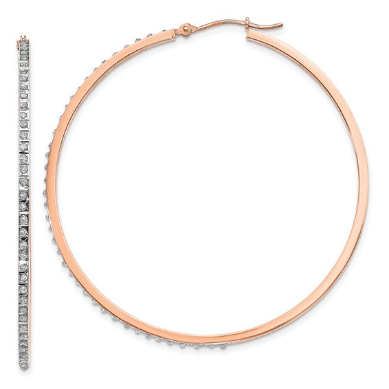 14k Rose Gold Diamond Fascination Round Hinged Hoop Earrings