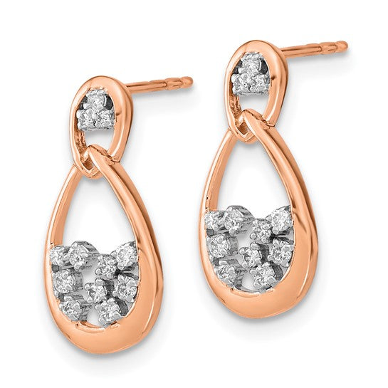 14k Rose Gold Polished Diamond Double Teardrop Post Earrings
