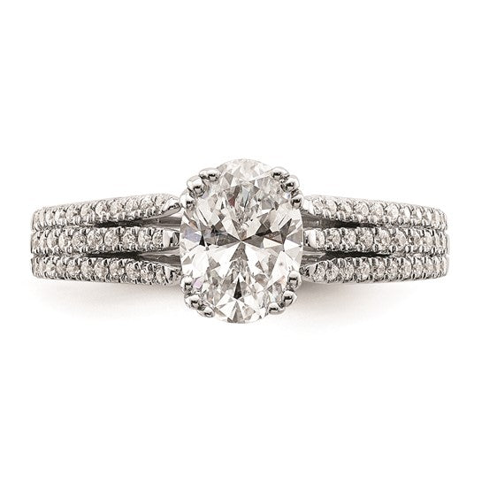 14k White Gold 3-Row (Holds 1 carat (8.00x6.1mm) Oval Center) 1/4 carat Diamond Semi-Mount Engagement Ring