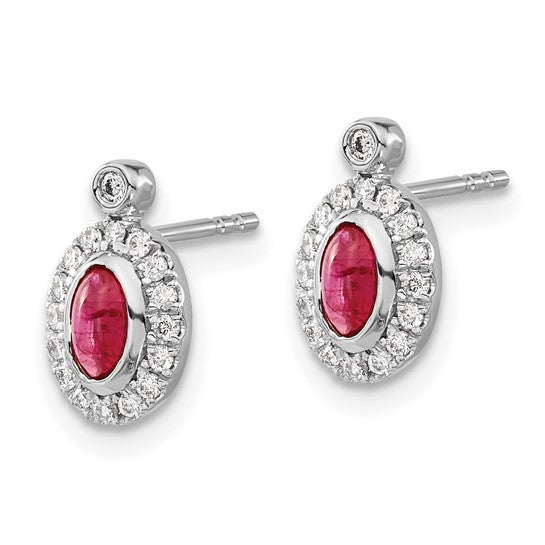 14k White Gold Diamond and Cabochon Ruby Earrings