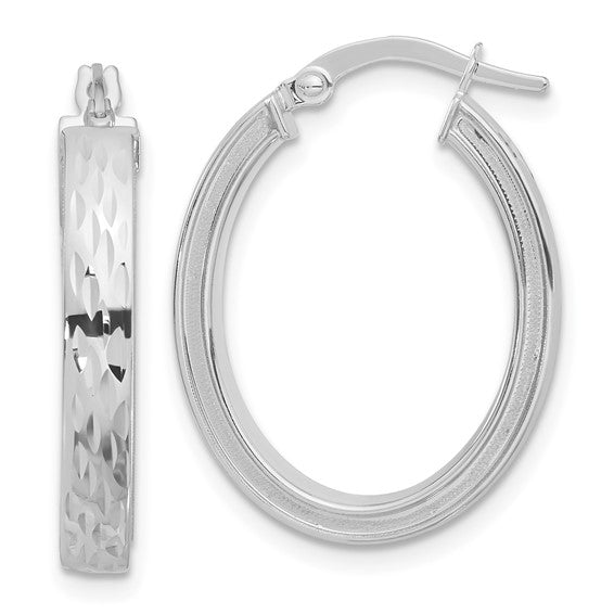 14K White Gold Diamond-cut Oval Hoop Earrings