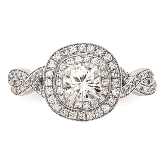 14K White Gold Halo Plus (Holds 1/2 carat (5.00mm) Cushion Center) 3/8 carat Diamond Semi-Mount Engagement Ring