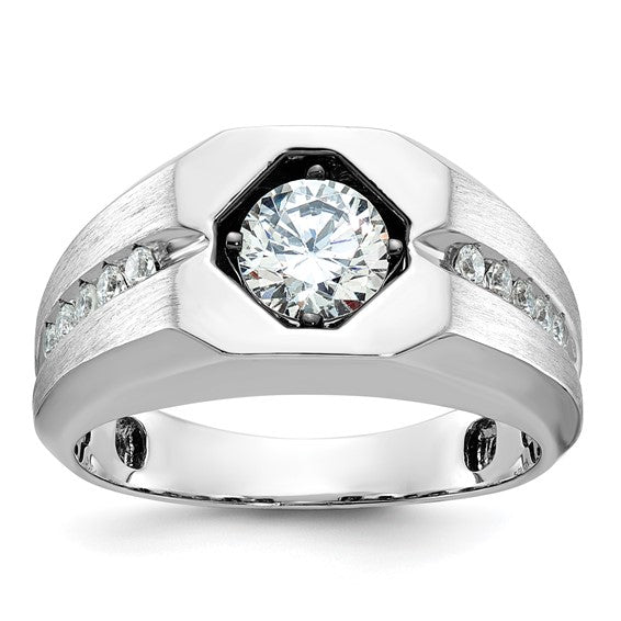 14k White Gold IBGoodman Men's Polished and Satin 1/5 carat Diamond Semi-mount Ring