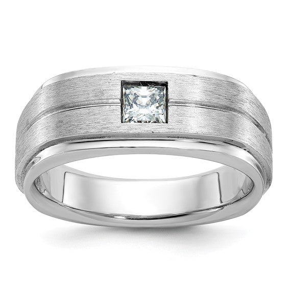 14k White Gold IBGoodman Men's Polished and Satin 3/8 carat Diamond Complete Ring