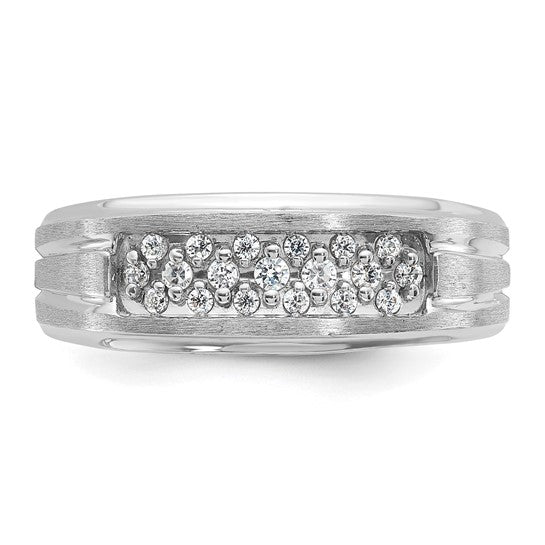 14k White Gold IBGoodman Men's Polished Satin and Grooved 1/4 Carat AA Quality Diamond Ring