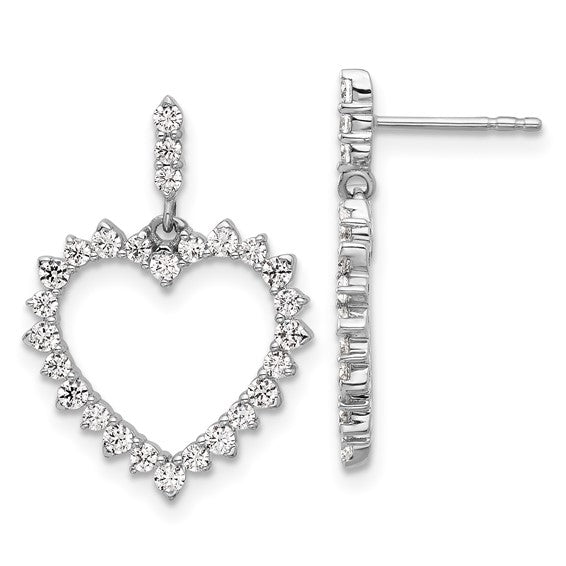 14K White Gold Lab Grown Diamond Open Heart Post Dangle Earrings