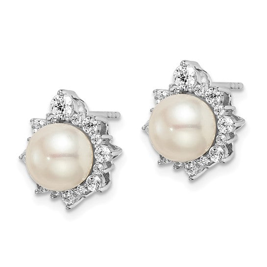 14K White Gold Lab Grown Diamond VS/SI GH, FWC Pearl Post Earrings