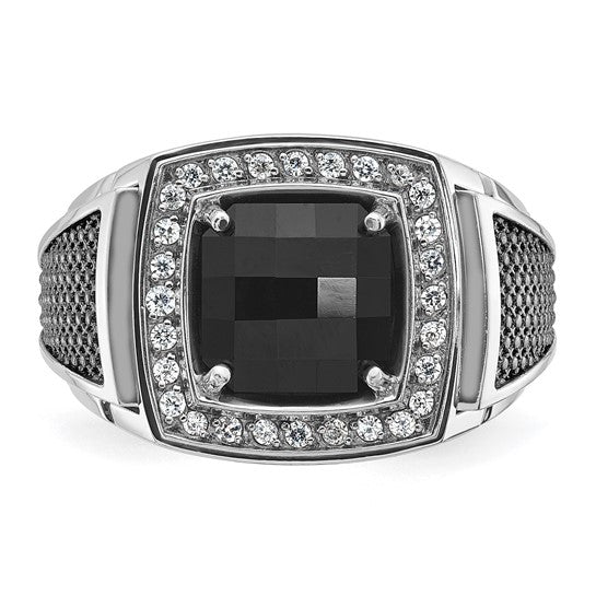 14k White Gold with Black Rhodium IBGoodman Men's Onyx and 1/4 carat Diamond Complete Ring