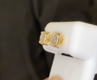 .20 CARAT REAL DIAMONDS STERLING SILVER YELLOW GOLD PLATED WOMENS 6 MM EARRINGS STUDS