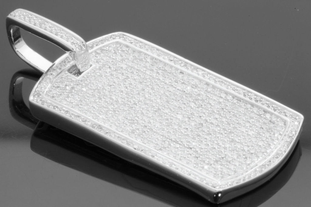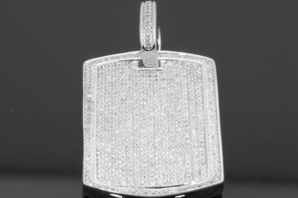 3 CARAT MENS STERLING SILVER 2" REAL DIAMOND DOG TAG PENDANT CHARM PIECE