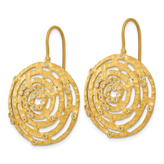 Herco 14K Diamond Textured Cut-out Circle Dangle Earrings