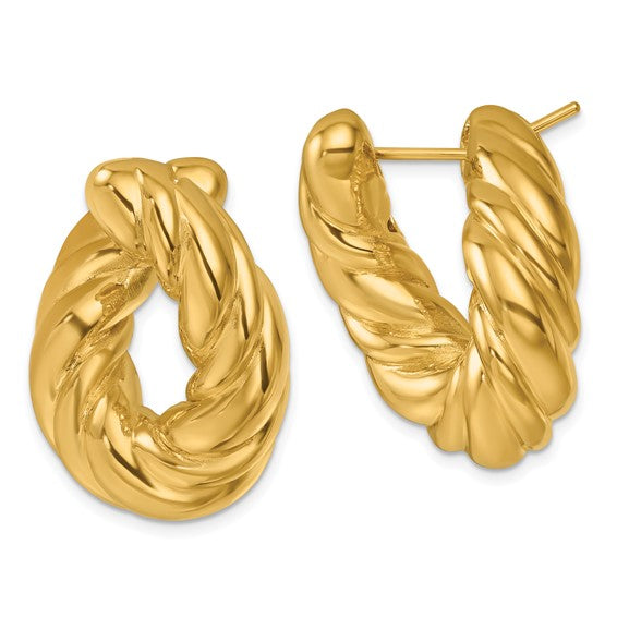 Herco 14K Polished and Curved Twist Oval Hoop Earrings