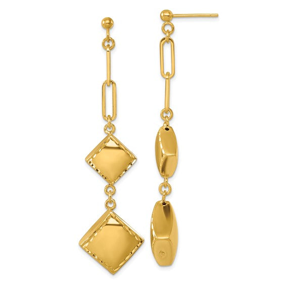 Herco 14K Polished and Diamond-cut Fancy Paperclip Chain Post Dangle Earrings