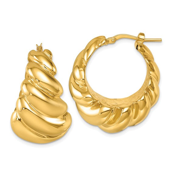 Herco 14K Polished and Grooved Graduated Round Hoop Earrings