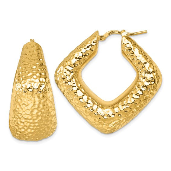 Herco 14K Polished and Textured Large Diamond-Shaped Hoop Earrings