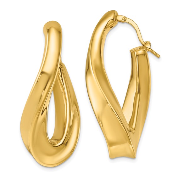 Herco 14K Polished and Twisted Curved Oval Hoop Earrings