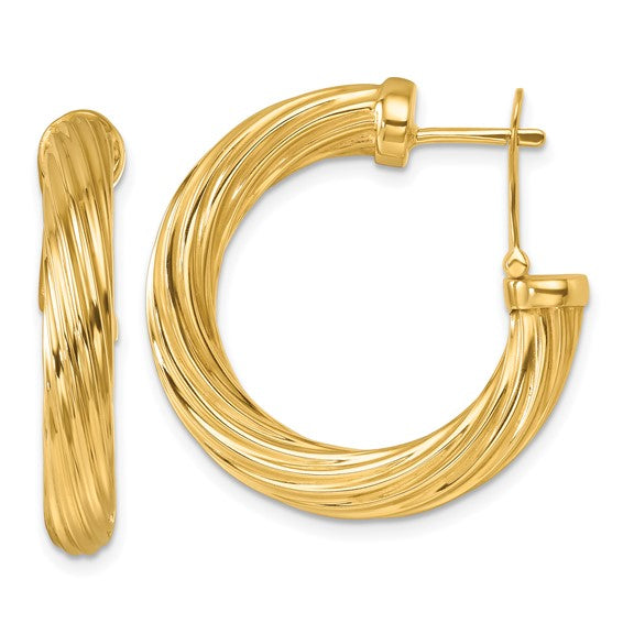 Herco 14K Polished and Twisted Round Omega Back Hoop Earrings