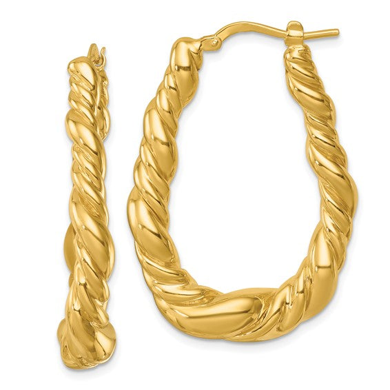 Herco 14K Polished and Twisted Teardrop Hoop Earrings
