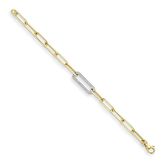 Herco 14K Two-tone Diamond Paper Clip Link 7.5 inch Bracelet