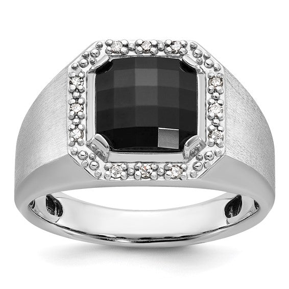 14k White Gold IBGoodman Men's Onyx and 1/8 carat Diamond Complete Ring