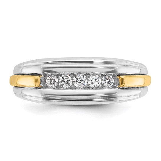 IBGoodman 14k Two-tone Men's Polished and Grooved 5-Stone 1/4 Carat AA Quality Diamond Ring