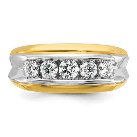 IBGoodman 14k Two-tone Men's Polished and Grooved 5-Stone 1 Carat AA Quality Diamond Ring