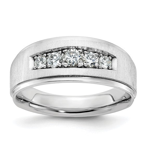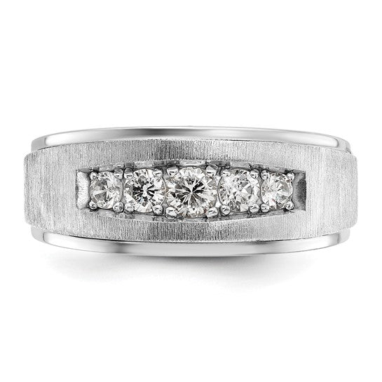IBGoodman 14k White Gold Men's Polished and Brushed 5-Stone 1/2 Carat AA Quality Diamond Ring