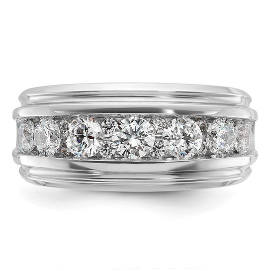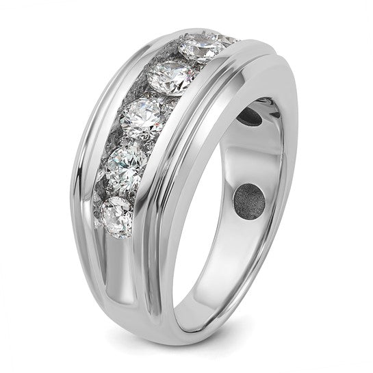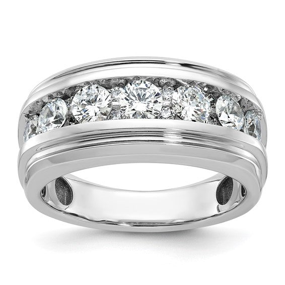 IBGoodman 14k White Gold Men's Polished and Grooved 1 3/4 Carat AA Quality Diamond Ring