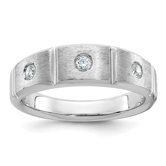 IBGoodman 14k White Gold Men's Polished Satin and Grooved 3-Stone 1/5 Carat AA Quality Diamond Ring