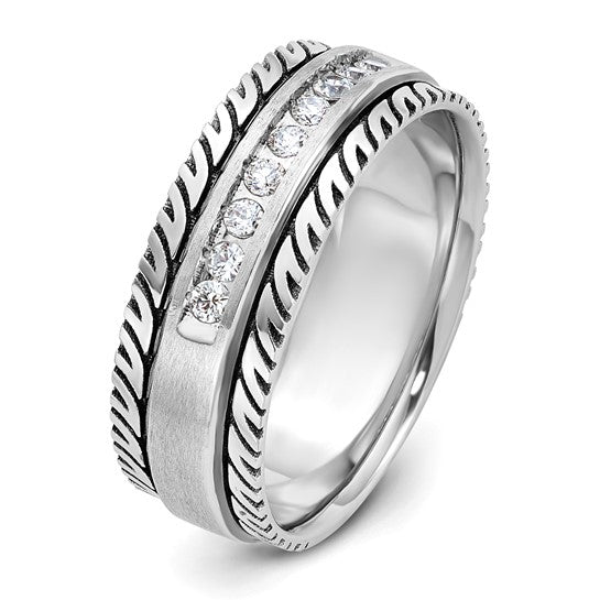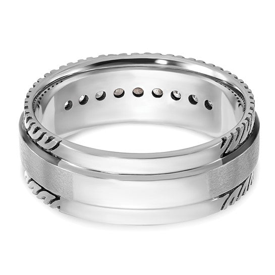 IBGoodman 14k White Gold with Black Rhodium Men's Polished Satin and Grooved 1/5 Carat AA Quality Diamond Ring