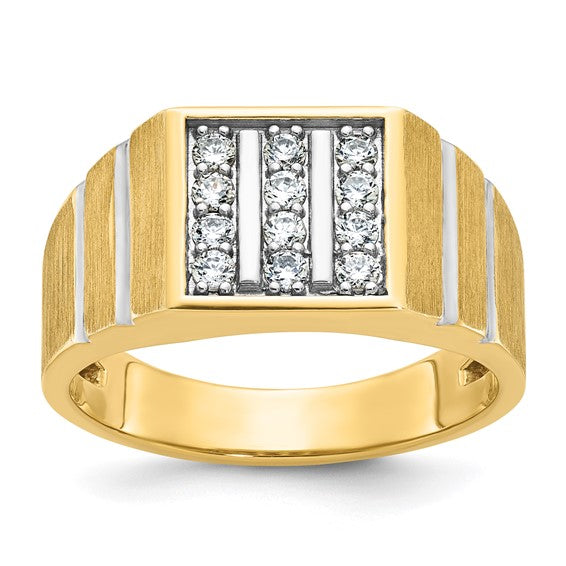 IBGoodman 14k with White Rhodium Men's Polished Satin and Grooved 3-Row 1/3 Carat Lab Grown Diamond Ring